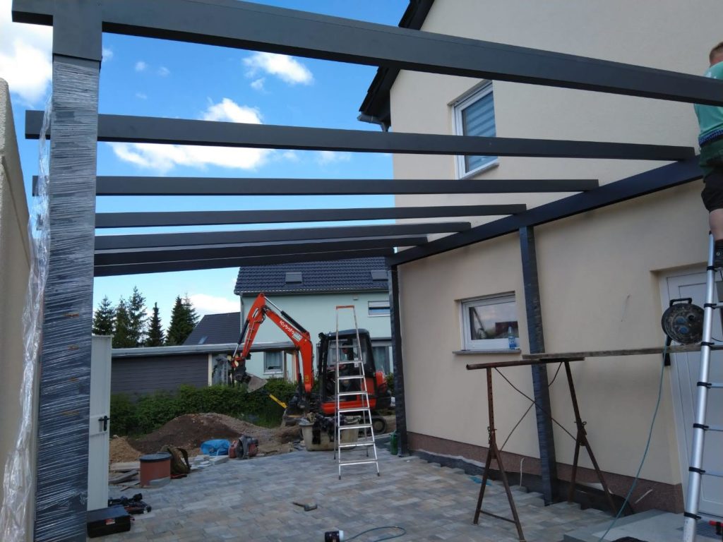 Pflastern und Carport-Aufbau